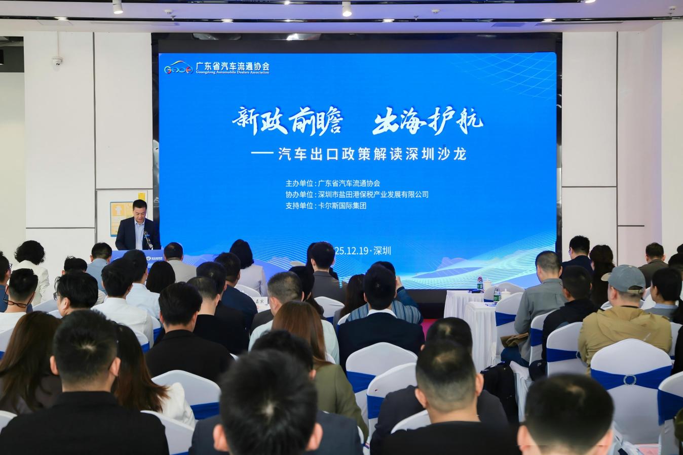 12月19日,由广东省汽车流通协会主办、保发公司协办的深圳首届“新政前瞻 出海护航——汽车出口政策解读深圳沙龙”在由保发公司运营管理的深圳(前海)国际汽车进出口基地顺利举行。活动邀请来自深圳市商务局、汽车出口相关企业的150余位行业代表共同聚焦汽车出口新政,开展实务交流,助力深圳汽车出口企业把握新规、稳健前行。